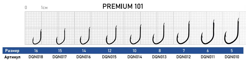 Dunaev Premium 101 – это одинарные крючки японского производства, имеющие превосходное качество. Такая форма крючков получила широкое признание и активно применяется на водоемах Европы. Для их изготовления используется очень прочная проволока из высокоуглеродистой стали. Они не подвержены деформации даже при существенных нагрузках. Жало крючка острейшей заточки, оно с легкостью пронзает губу рыбы, а бородка не дает добыче сорваться. К оснастке такие крючки крепятся за лопатку. В итоге с Premium 101 получается весьма деликатная снасть, которая прекрасно подходит для рыбалки на осторожных особей. Эти крючки безупречны для ловли различной рыбы на поплавок, либо фидерной снастью средних размеров карпа, карася, леща на объемные насадки.