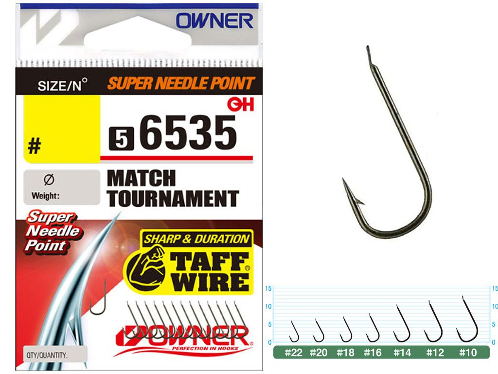Owner Match Tournament 56535 – серия спортивных крючков для высокоскоростной ловли уклейки, плотвы, густеры, окуня и прочих спортивных трофеев. Удлиненное цевье помогает не только быстро снимать пойманную рыбу, но и быстро менять насадку. Крючки Owner 56535 имеют круглый загиб, удлиненное цевье с удобной для привязывания лопаткой, защитное покрытие коричневого цвета. Owner Match Tournament с успехом используются в донных и поплавочных оснастках для ловли рыбы на животные насадки. Острейшее жало с заточкой Super Needle Point и нормальной величины бородка гарантируют эффективную подсечку и уверенное удержание клюнувшей рыбы.