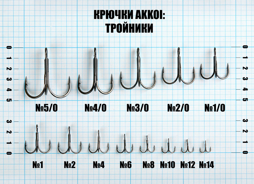 Тройники AKKOI отлично подойдут для оснастки любых воблеров и блесен, а размерная линейка позволит подобрать крючки оптимального размера.