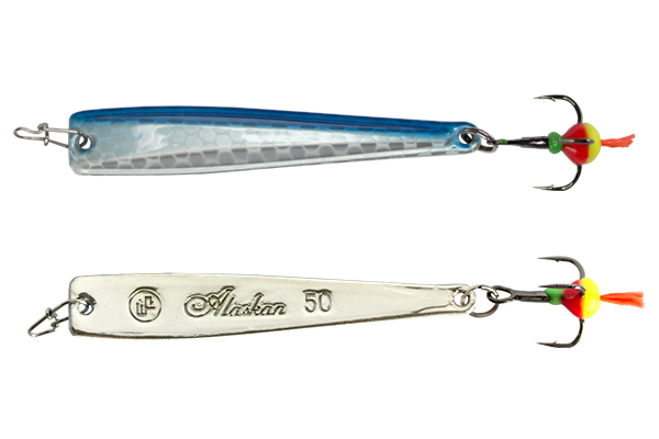 Представленные здесь вытянутые колебалки Alaskan 80 формой напоминают разрезанный по вертикальной оси конус. Верхняя часть тяжелее и шире, чем нижняя. Это обеспечивает сильные переваливания с боку на бок при отвесной ловле. Создатели рекомендуют делать в проводках остановки на 6 - 10 секунд для более стабильной и привлекательной игры приманки. Эксперты Eco Pro создали серию Alaskan 80 для рыбалки со льда. Длина 8 см и вес 14,5 гр рассчитаны на облавливание солидных глубин в поисках крупного судака или щуки. Тройной крючок Saikyo имеет яркую цветную каплю и крохотную мушку. Такой дополнительный дразнящий элемент может стать решающим для неактивной, заторможенной в зимнее время рыбы.