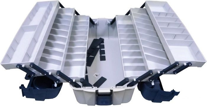 Ящик Aquatech 2706 - это качественный пластиковый ящик с шестью сдвижными полками, фиксаторами для снастей или инструментов и ручкой для транспортировки. Вертикальная прочность - не менее 90 кг