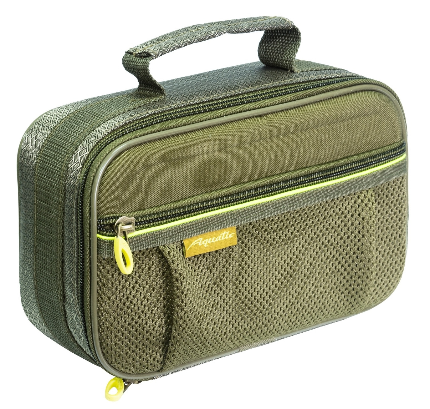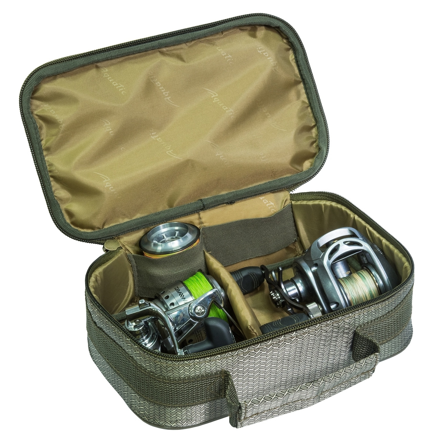 Полужесткий чехол Aquatic Ч-04 для хранения и транспортировки 2 рыболовных катушек с запасными шпулями. Подходит для многих моделей эхолота и других вещей, требующих дополнительной защиты. Изготовлен из водонепроницаемого материала. Чехол имеет застежку на молнии и карман из сетки.