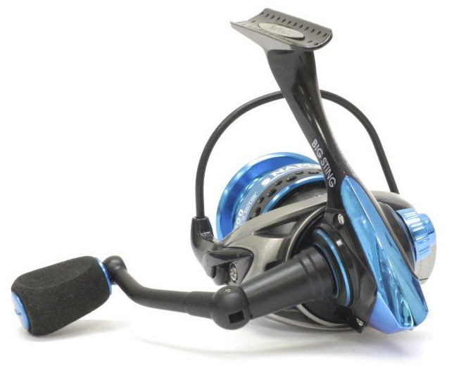 Главным отличием спиннинговых катушек Big Sting является необычная система фиксации рукояти - она крепится напрямую в главную пару. Разработчики бренда Namazu использовали этот способ крепления для того, чтобы свести к минимуму люфты и усилить механизм катушек. Для снижения веса безынерционок при изготовлении корпуса использовался передовой композитный материал. В механизме функционируют 5 шариковых и 1 роликовый подшипник. На момент выхода серия представлена тремя моделями с индексами 2000, 3000 и 4000. У "старшей" модели передаточное число достигает 5,5:1, в то время как остальные две имеют передатку 5,1:1. Катушки Namazu Big Sting комплектуются запасной пластиковой шпулей.
