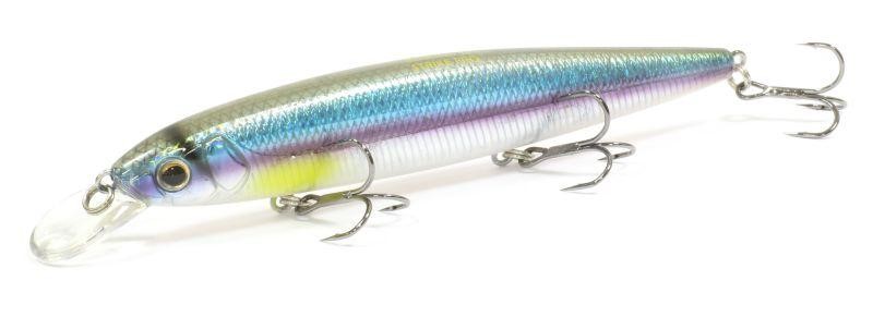 Воблер типа "minnow" Bold 110SP имеет длинное веретенообразное, при этом довольно упитанное тело и оснащен тремя мощными тройниками Owner. Минноу имеет интересную систему огрузки. Передний шарик расположен в голове приманки и может передвигаться от одной жаберной крышки к другой. В следующем отделении расположены пять мелких металлических шариков, выполняющих роль высокочастотной погремушки. Сразу за передним тройником есть тяжелый шарик, который отвечает за дальность заброса. За центральным тройником есть стационарная подгрузка, которая улучшает поведение приманки при твичинге. На равномерной проводке воблер демонстрирует красивую устойчивую игру с осевыми доворотами корпуса. На проводке стоп-энд-гоу при каждой паузе воблер продолжает интенсивно покачивать боками. Самым эффективным Bold 110SP является для ловли щуки.