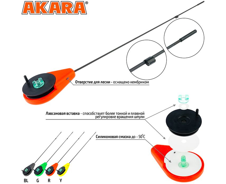 Удочка зимняя Akara BRZ - современная зимняя удочка для ловли на мормышку полуоткрытого типа, благодаря этому она несколько меньше обычной удочки. Модель оснащена углепластиковым хлыстиком, позволяющим без проблем ловить в любые погодные условия.