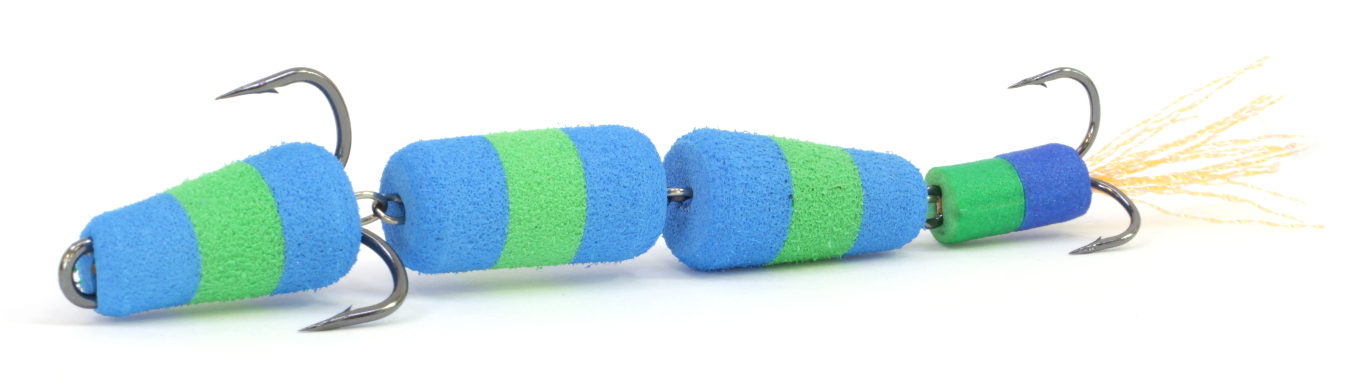 В основе мандулы проволочный каркас. На нем закреплены 4 сегмента из вспененного ЭВА. Этот материал имеет неплохую плавучесть, благодаря чему "хвост“ приманки приподнимается вверх при проводке в придонном слое. Хищник принимает мандулу за копошащуюся у дна рыбку и незамедлительно нападает. В качестве оснащения использована пара тройных крючков. На одном из них можно заметить пучок нитей. Эта деталь нужна для привлечения внимания заторможенных рыб. Среди расцветок Premium Classic 115 есть как темные, так и яркие варианты для результативной рыбалки. Длина каждой модификации составляет 11,5 см.
