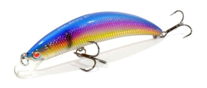 Яркий многоцветный окрас минноу Crazy Banana 90 будет хорошо заметен в мутной воде. Его активная игра в рабочем горизонте на глубине от 10 до 60 см будет привлекать хищников, прочесывающих приповерхностный слой акватории в поисках легкой добычи. Степень плавучести этой приманки положительная, поэтому с ней будет проще обходить подводные препятствия.