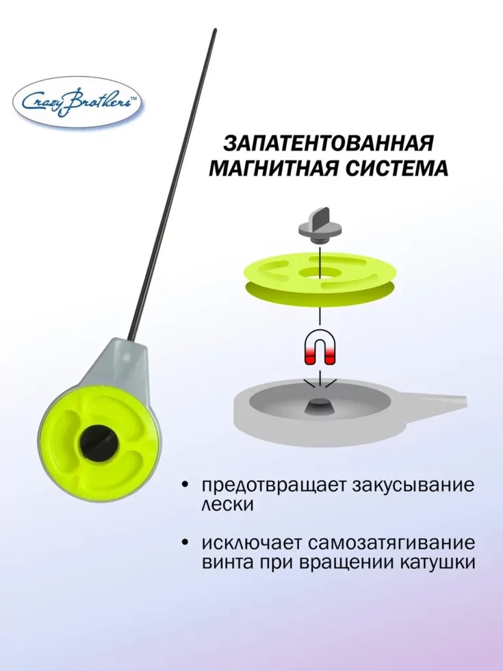 Удочка «Касатка» была разработана для активной ловли на безнасадочную снасть. Форма корпуса позволяет «работать» различными хватами. Ослабив винт катушки удобно регулировать натяжные лески при поклевке крупной рыбы, простым движением кисти, получается фрикцион с очень тонкой настройкой. В удочке применена запатентованная магнитная система исключающая самозатягивание винта при вращении катушки. Что исключает применение разгрузочной шайбы, которая часто теряется. Применение современных материалов с вспенивателями позволило получить очень легкую удочку, даже с учетом магнитов вес удочки всего 23 гр.