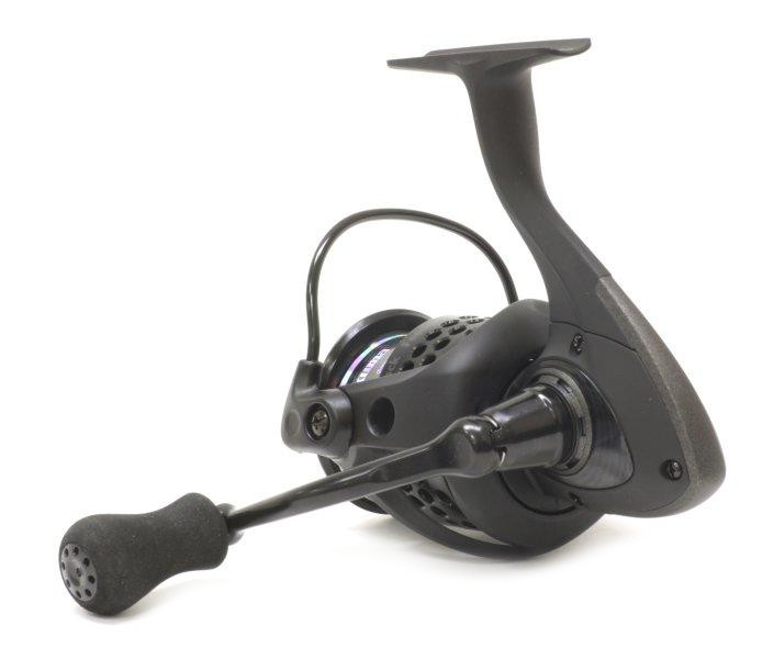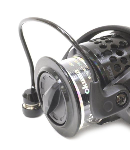 В 2019 году конструкторы Окума пополнили семейство фидерных безынерционок линейкой Custom Black Feeder. Она выполнена в элегантном черном дизайне. Получила высокоточную эллиптическую передачу. Подгонка элементов обеспечивает идеальное сцепление, а это залог слаженной работы и надежности механизма в целом. Представленная модель с индексом 55F рассчитана на охоту за крупной рыбой. Мультидисковый фрикцион выдерживает нагрузки до 15 кг. Его регулировка расположена спереди. Объем алюминиевой шпули составляет 180 м лески 0,30 мм. Ролик EVRII с продуманной геометрией выполняет роль противозакручивателя. За один оборот ручки выматывается 79 см. Передаточное число составляет 4,5:1. Имеется запасная шпуля, которая вмещает 390 м лески 0,30 мм. За плавность хода Okuma Custom Black Feeder 55FD отвечают 7 подшипников. Ротор оригинальной конструкции Cyclonic Flow прошел компьютерную балансировку по системе RESII. Это помогло компенсировать излишние паразитные вибрации. Весит модель 429 гр.