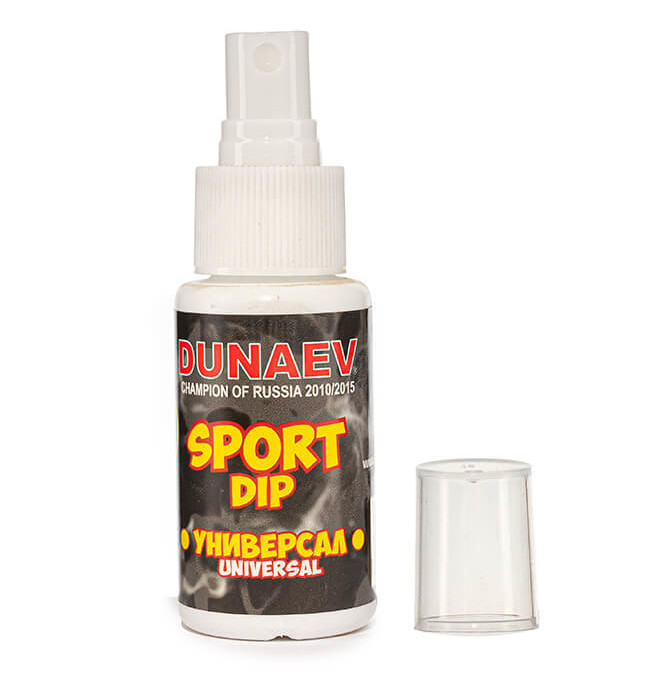 Дип Dunaev Sport Универсал – превосходный ароматизатор с особенным составом. Дип имеет устойчивый, сильно концентрированный аромат, не выветривающийся и не теряющий своей насыщенности со временем. Sport DIP Универсал показывает неизменно высокие результаты совершенно в любых условиях, удобен и прост в применении, чем заслужил свою популярность у рыболовов-спортсменов. Эта добавка используется в фидерной и карповой ловле, обладает высокопроникающей способностью в насадку (кукурузу, натуральную наживку, бойлы), фиксируясь на ней на длительный срок. Состав Sport дипа предназначен для быстрого привлечения рыбы к месту ловли. Этот дип можно применять в условиях зимней рыбалки, так как он не замерзает при температуре -30°C. Не растворяет ПВА-мешки. Продолжительность хранения никак не сказывается на его эффективности. Dunaev Sport DIP выпускается в виде спрея.