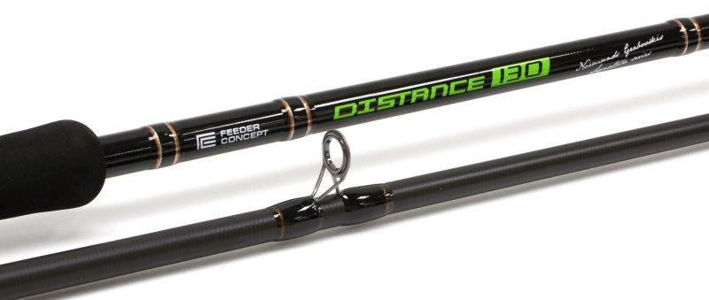 Строение фидерного удилища линейки Distance продумано для выполнения наиболее дальних забросов. Снасти марки Feeder Concept разрабатываются при участии профессионалов спортивной ловли, которые принимают участие в командах из разных стран. Данная модель весит 295 гр при длине в 420 см. Для изготовления бланка среднебыстрого строя используется карбон марки Т36. Благодаря его использованию удается получить минимальный вес при высокой прочности. Для покрытия рукояти конкретно этой модели применяется пористый ЭВА, так как она наиболее мощная в серии и рассчитана на применение кормушек, весящих от 60 до 130 гр. В качестве фурнитуры используются кольца SiC, повышающие дальность заброса за счет понижения трения.