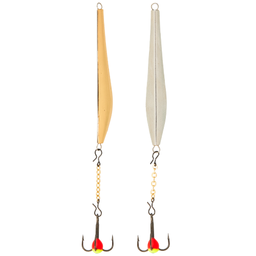 Lucky John Double Blade - блесна оснащенная цепочкой с тройником. Приманка прекрасно работает при ловле как активного, так и пассивного окуня на небольших глубинах, на водоемах без течения или со слабым течением. Пластины из разных металов с каждой из сторон блесны придают приманке дополнительную привлекательность.
