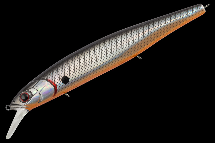 Tsu Yoki Flirt 128SP - Big minnow с нейтральной плавучести для ловли на глубинах 2.0 - 3.0 метров. При работе с FLIRT 128SP нужно использовать весь арсенал проводок, от равномерной до рывковой. На равномерной проводке воблер имеет очень приятную широкоамплитудную, и при этом низкочастотную собственную игру. При использовании стоп энд гоу (протяжка с с паузой или несколько оборотов катушки с паузой) воблер в паузе медленно всплывает, немного покачиваясь. На самой протяжке бликует и немного показывает бока. На рывковой анимации FLIRT 128SP ведет себя очень отзывчиво и послушно. Если анимировать его короткими, но достаточно резкими рывками, то воблер разворачивается на 90+ градусов практически на месте, в момент самого рывка активно показывает бока. FLIRT 128SP отличный воблер для охоты за щукой над коряжниками и кормовыми поливами.