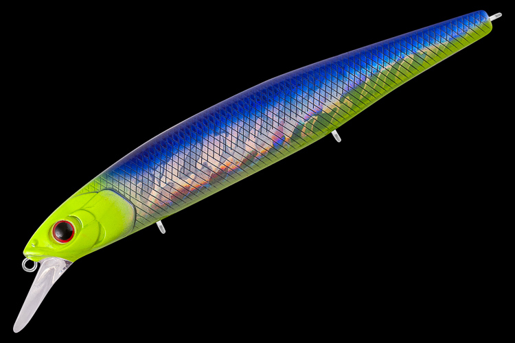 Tsu Yoki Flirt 128SP - Big minnow с нейтральной плавучести для ловли на глубинах 2.0 - 3.0 метров. При работе с FLIRT 128SP нужно использовать весь арсенал проводок, от равномерной до рывковой. На равномерной проводке воблер имеет очень приятную широкоамплитудную, и при этом низкочастотную собственную игру. При использовании стоп энд гоу (протяжка с с паузой или несколько оборотов катушки с паузой) воблер в паузе медленно всплывает, немного покачиваясь. На самой протяжке бликует и немного показывает бока. На рывковой анимации FLIRT 128SP ведет себя очень отзывчиво и послушно. Если анимировать его короткими, но достаточно резкими рывками, то воблер разворачивается на 90+ градусов практически на месте, в момент самого рывка активно показывает бока. FLIRT 128SP отличный воблер для охоты за щукой над коряжниками и кормовыми поливами.
