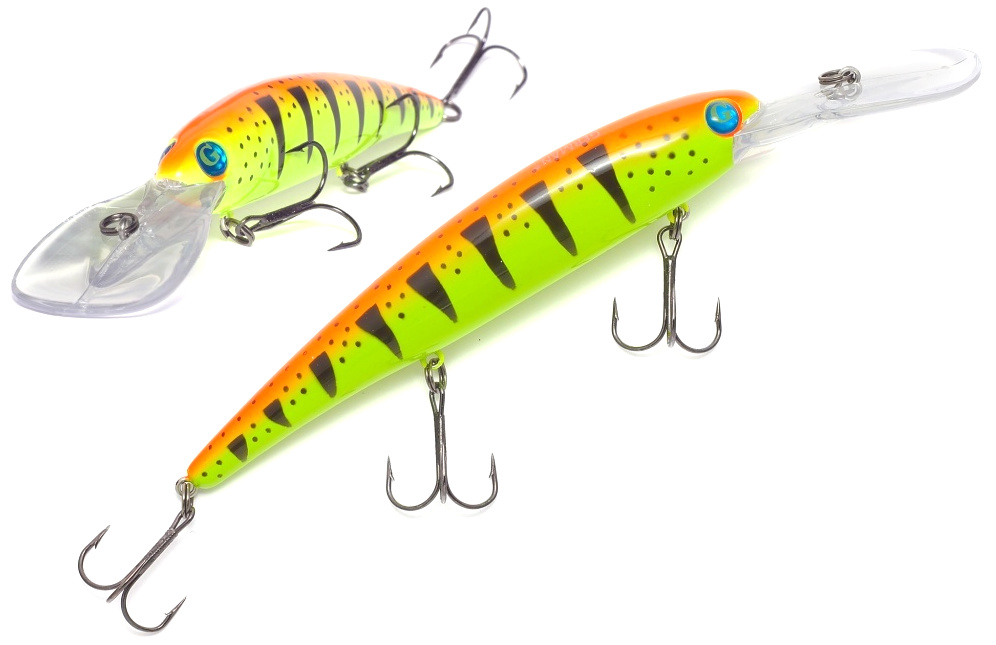 Если есть универсальный воблер, то это он. GG Bandit именно та приманка которая должна быть в коробке у любого охотника за хищником, будь то начинающий или уже опытный рыбак. При чём данная приманка может использоваться как для ловли троллингом (на дорожку), так и для ловли в заброс. Его заявленные характеристики заглубления при троллинге (дорожке) 7-9 метров, но это не значит что вы не сможете его провести и по 4-5. Вам нужно просто уменьшить отпуск или увеличить толщину используемой плетёнки (лески) и вуаля. Простая и вместе с тем уловистая форма обеспечила ему огромную популярность, а цветовая палитра для данной модели столь обширна, что позволит найти «свой» цвет для самого взыскательного рыбака.