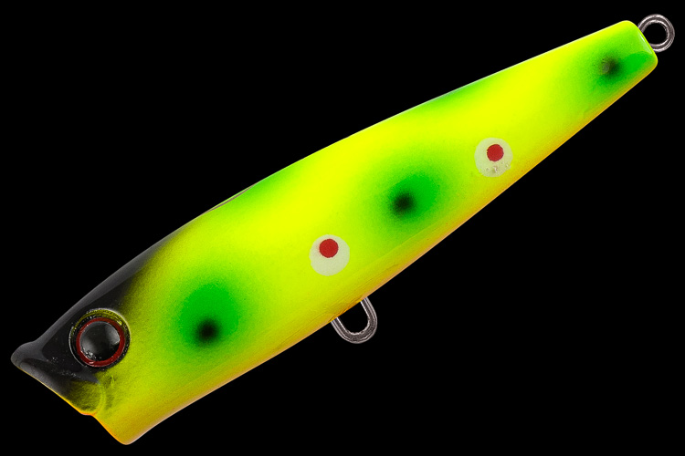 Поппер TsuYoki GORN 65F относится к приманкам так называемого " top water" класса, то есть приманкам работающим на поверхности воды и вызывающих поклевки хищной рыбы за счет своих акустических данных.
