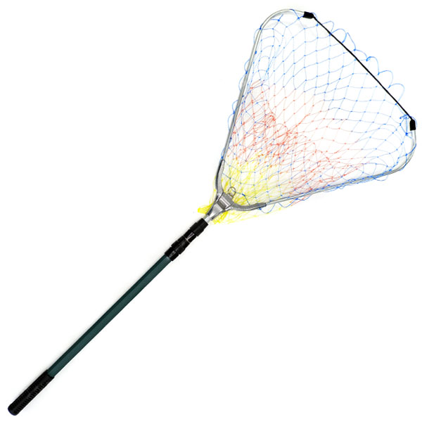 Телескопический подсачек треугольной формы будет удобен для охоты за карпами, а также для фидерной или же донной ловли. Благодаря складной ручке этот подсачек будет удобен и непосредственно у водоема, и при перевозке. Прочная сетка выполнена из цветной лески.