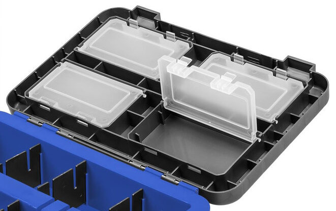 Ящик зимний позволит аккуратно хранить рыболовные принадлежности. В нижнем отделении можно хранить удочки, рыбу, одежду и другие крупные аксессуары для зимней ловли. В крышке ящика есть несколько отделений для хранения мелочей. В комплекте к зимнему ящику идет широкий ремешок для удобной транспортировки ящика на льду.