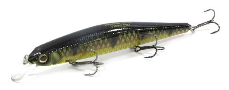 Обновленная модель воблера Strike Pro Inquisitor в размере 13 сантиметров. Приманки данной серии оснащены магнитной системой для дальнего заброса. Воблер имеет небольшую довольно узкую лопатку, расположенную под углом примерно тридцать градусов. Данная приманка оснащена крючками Owner. На равномерной проводке игра мягкая, не нагружающая снасть, при этом отчетливо видны осевые довороты корпуса. При проводке стоп-энд-гоу на каждой паузе минноу успевает красиво помахать боками. Данное семейство отлично подходит для твичинговых проводок, при этом эти воблеры очень четко удерживаются на заданной глубине. Подходят для ловли большинства хищных видов рыб.