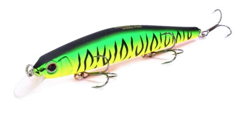 Обновленная модель воблера Strike Pro Inquisitor в размере 13 сантиметров. Приманки данной серии оснащены магнитной системой для дальнего заброса. Воблер имеет небольшую довольно узкую лопатку, расположенную под углом примерно тридцать градусов. Данная приманка оснащена крючками Owner. На равномерной проводке игра мягкая, не нагружающая снасть, при этом отчетливо видны осевые довороты корпуса. При проводке стоп-энд-гоу на каждой паузе минноу успевает красиво помахать боками. Данное семейство отлично подходит для твичинговых проводок, при этом эти воблеры очень четко удерживаются на заданной глубине. Подходят для ловли большинства хищных видов рыб.