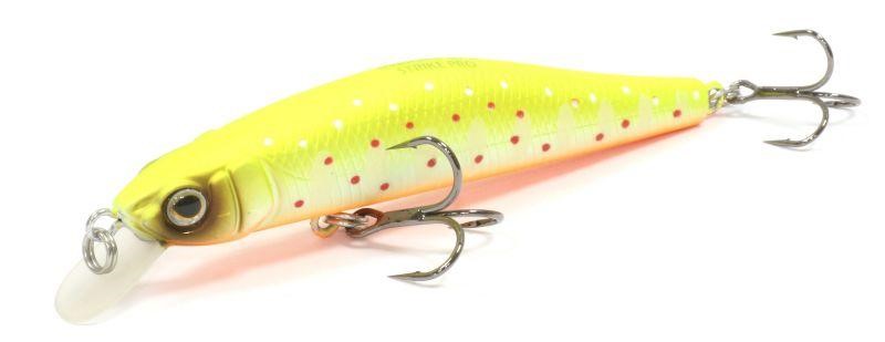 При равномерной проводке минноу показывает красивый роллинг (продольные колебания), сильно кренится боками в сторону. Колебания сохраняются и на паузе в Stop & Go, в перерывах между рывками. Однако в Страйк Про приманку позиционируют как твичинговую.