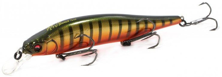 Если ваше внимание привлек безупречный внешний вид Ito-Shiner от Megabass, то он послужит отличным поисковым воблером на малознакомых водоемах и непременно вызовет живой интерес у хищника, который притаился на солидных расстояниях. Разработчиками этой серии был заложен немалый потенциал, который воплощается при сильных резких рывках с большой амплитудой и с короткими паузами после четырех-пяти рывков. В корпусе воблера расположена система балансировки Triple Tungsten Weight Oscillate System, состоящая из трех вольфрамовых грузиков-шаров. Благодаря их меньшему размеру в сравнении с системой балансировки из двух шаров, эти грузики смещаются дальше в хвостовую область и способствуют увеличению дальности расстояния полета воблера. Благодаря уплощению тела воблера с боков, при равномерной проводке приманка совершает более акцентированные и выразительные повороты в стороны, а рывки заставляют ее отклоняться дальше и вибрировать на паузах, привлекая тем самым внимание потенциальных жертв.