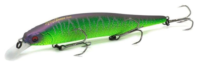 Если ваше внимание привлек безупречный внешний вид Ito-Shiner от Megabass, то он послужит отличным поисковым воблером на малознакомых водоемах и непременно вызовет живой интерес у хищника, который притаился на солидных расстояниях. Разработчиками этой серии был заложен немалый потенциал, который воплощается при сильных резких рывках с большой амплитудой и с короткими паузами после четырех-пяти рывков. В корпусе воблера расположена система балансировки Triple Tungsten Weight Oscillate System, состоящая из трех вольфрамовых грузиков-шаров. Благодаря их меньшему размеру в сравнении с системой балансировки из двух шаров, эти грузики смещаются дальше в хвостовую область и способствуют увеличению дальности расстояния полета воблера. Благодаря уплощению тела воблера с боков, при равномерной проводке приманка совершает более акцентированные и выразительные повороты в стороны, а рывки заставляют ее отклоняться дальше и вибрировать на паузах, привлекая тем самым внимание потенциальных жертв.