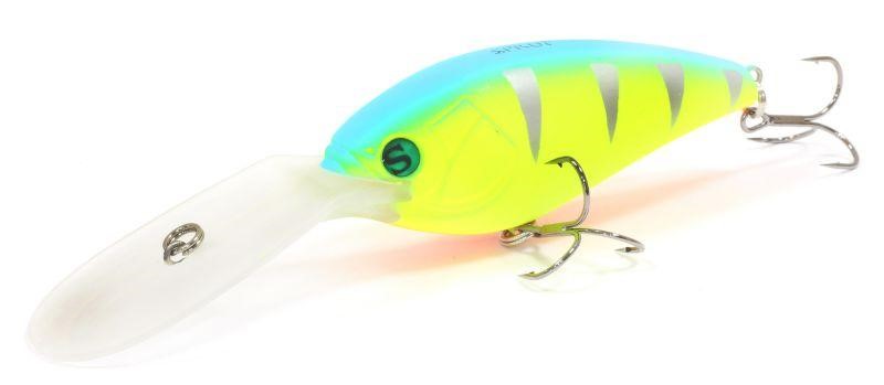Sprut Kabuto - крупная приманка типа “crank”, предназначенная для ловли на больших глубинах. Данный кренк обладает привлекательной среднечастотной игрой с большой амплитудой колебаний. Наличие крупной заглубляющей лопасти позволяет приманке быстро занимать нужный горизонт проводки. Воблер имеет угол погружения около 60 градусов. Это дает возможность ловить в местах с резким перепадом глубины, таких как глубоководные бровки и крутые свалы. Воблеры этой серии оснащаются погремушкой, служащей для привлечения хищника характерным шумом. Интенсивная игра и звуковой эффект Kabuto делают приманку очень привлекательной для хищника даже с приличного расстояния. Воблер может успешно применяться для ловли троллингом. Ловля в заброс подразумевает использование мощных снастей, так как Kabuto имеет большое лобовое сопротивление.