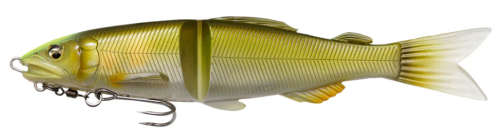 Magdraft Ayu Twitcher - реалистичный мягкий свимбейт от компании Megabass. Основная цель такой приманки - ловля крупного хищника преимущественно на небольших глубинах. За счет сегментированной конструкции тела свимбейты имеют очень подвижную игру. Приманка быстро включается в работу, активно вибрирует всем телом, активируя тем самым боковую линию - главный орган чувств у хищной рыбы. Эта серия рассчитана на твичинг и резкие рывки. Лучше она всего покажет себя на медленной или средней скорости анимации. Megabass Magdraft Ayu Twitcher оснащается тройником на подвижном вертлюге. Главная фишка этого оснащения - система Mag-hold, благодаря которой тройник фиксируется в специальной прорези и дополнительно удерживается магнитом. При поклевке крючок высвобождается из тела приманки и надежно фиксирует клюнувшую рыбу.