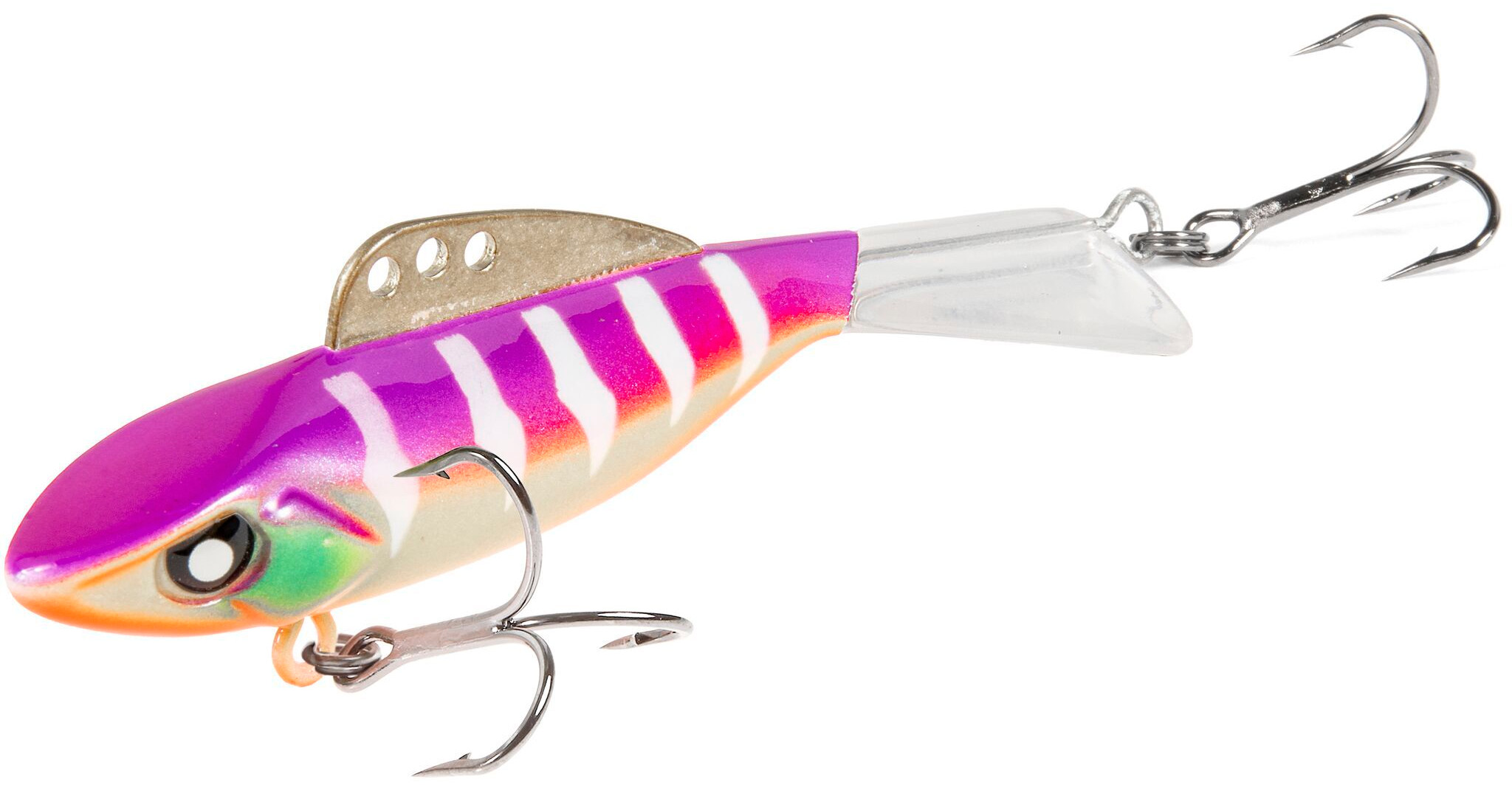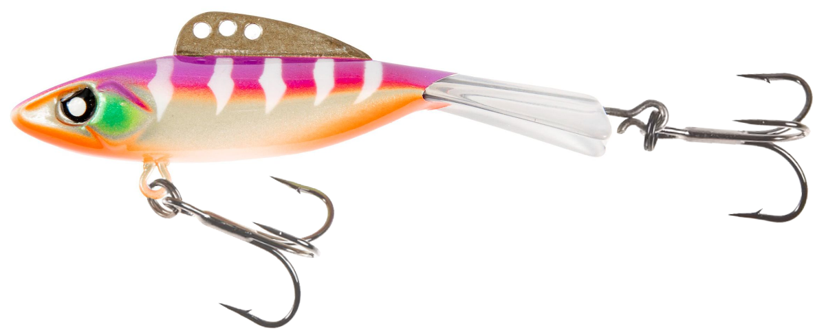 Зимой растормошить капризную, не очень активную рыбу не всегда просто. Потому представленные здесь балансиры из серии Mebaru 67 получили латунный плавник на спинке с 3 просверленными отверстиями. Во время интенсивного клева, хорошо закрепить леску за то, что спереди. Тогда балансир будет играть агрессивно, с подъемами по вертикали. Неактивной рыбе понравятся плавные, неспешные движения с малой амплитудой, когда используется заднее колечко. Рисовать классические широкие "восьмерки" приманка от Lucky John линейки Pro Series модели Mebaru 67 будет, если леску закрепить за центральное отверстие. Габариты модификации 6,7 см, вес - 18 гр. Корпус напоминает упитанного малька. На головной части есть плоская площадка, как у раттлина. Хвостовой плавник стабилизирует игру на любой глубине и в акваториях с течением. Балансир прочный. Выполнен из качественного пластика, который не боится мороза. Хвост и тело - единое целое.