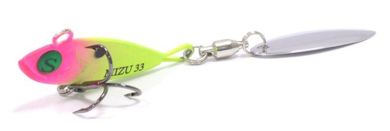 Sprut Mizu - тейлспиннер длиной 2,7 гр и весом 5 гр. Эта приманка хорошо подходит для ловли хищника в период пассивности. Лепесток, расположенный на хвосте, вращается во время проводки и создает интенсивную вибрацию, пробуждая интерес у хищника. Его движения также создают подъемную силу, что позволяет провести его ближе к поверхности воды. Эта приманка ловит окуня, небольшую щуку, голавля. Лучше всего тейлспиннер работает на непроточных водоемах.