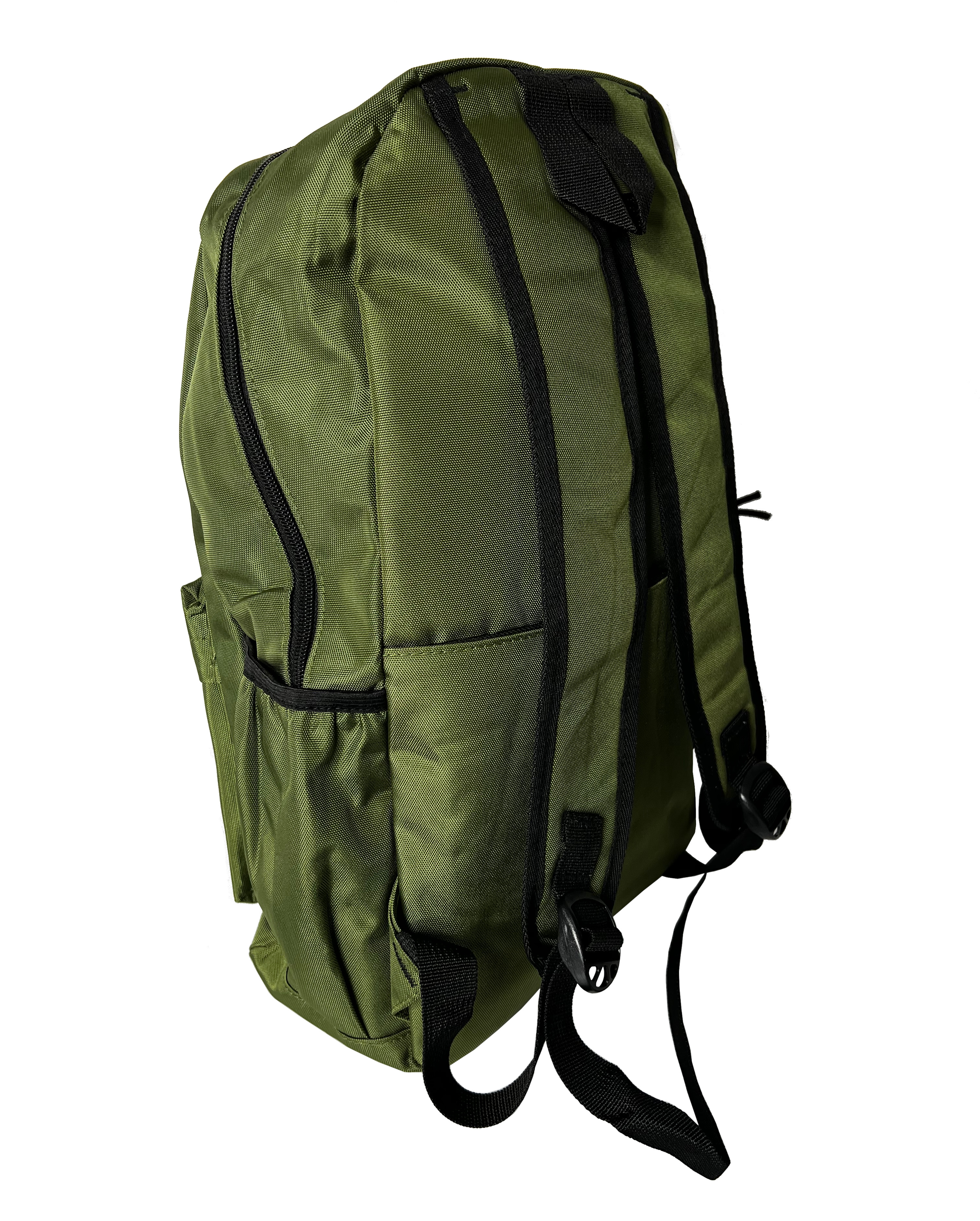 Крепкий рюкзак из плотного материала с мягкими шлейками и спинкой. Имеет 5 карманов. Высота по спине 43см, ширина по спине 30см, ширина дна 13см.