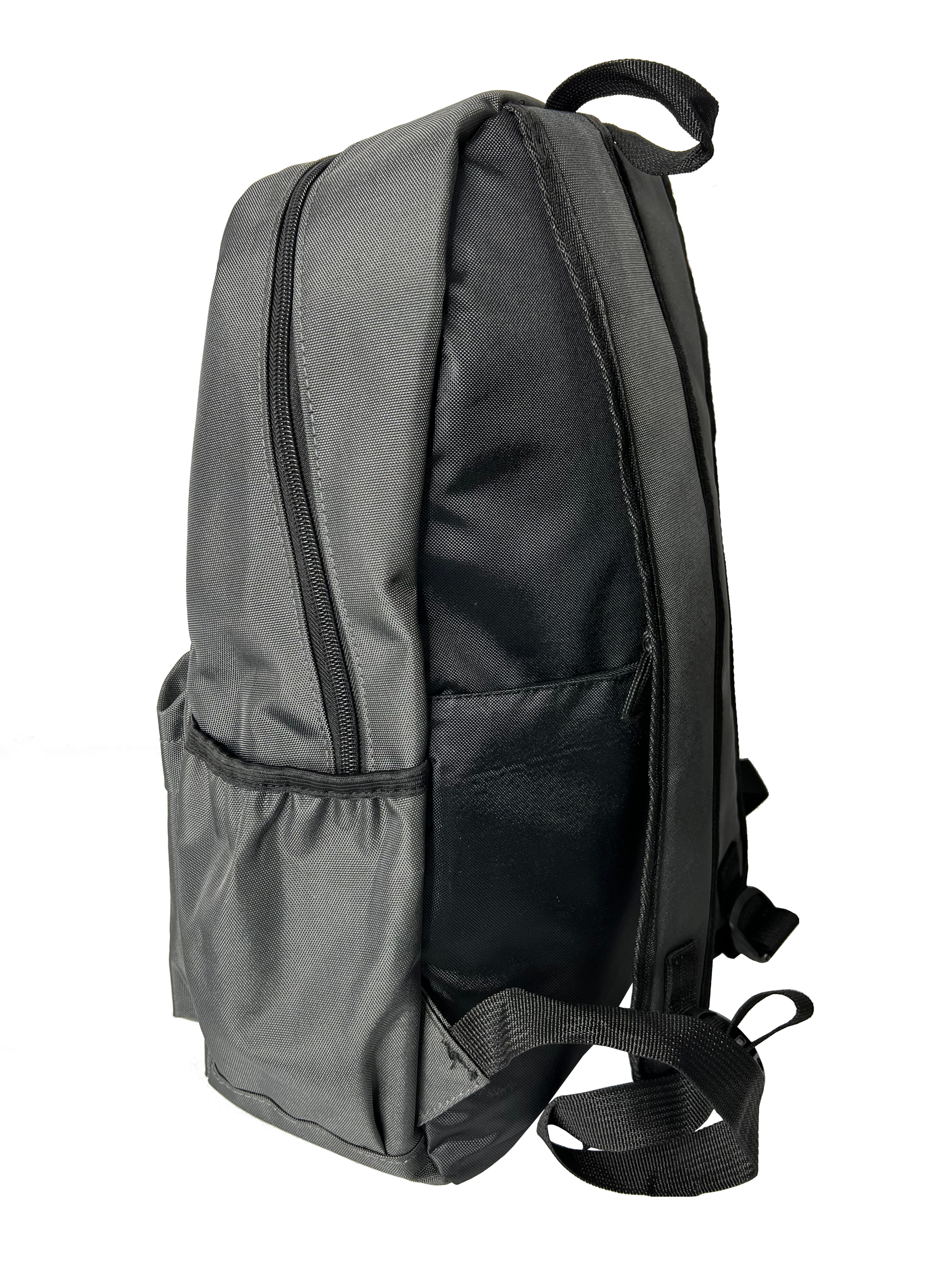 Крепкий рюкзак из плотного материала с мягкими шлейками и спинкой. Имеет 5 карманов. Высота по спине 43см, ширина по спине 30см, ширина дна 13см.