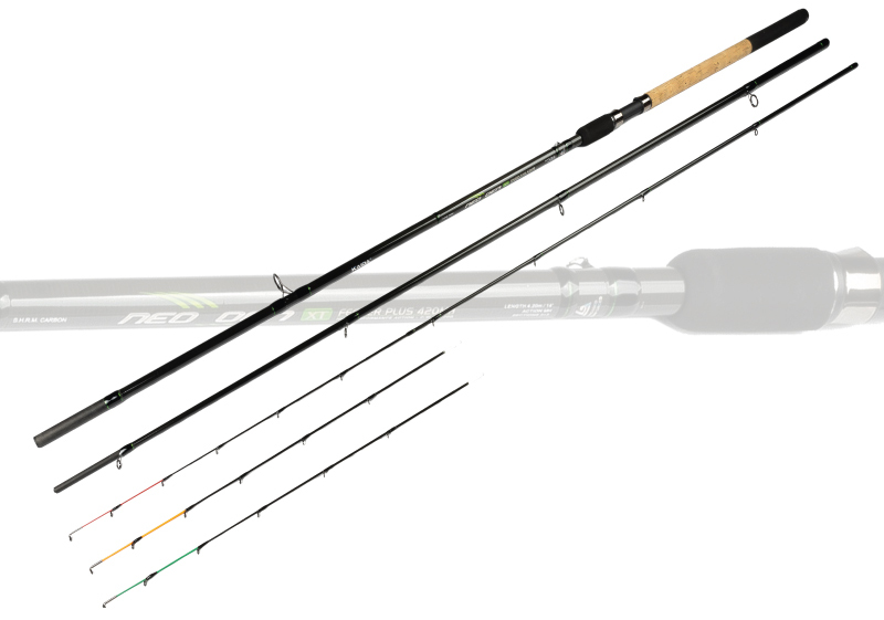 Удилище Kaida NeoXoen XT Feeder Plus имеет карбоновый бланк с увеличенной конусностью, который работает от комля . Метод стыковки колен в данном удилище - комель в хлыст . Кольца выполнены из оксида алюминия. Кольца, которые расположены на 2-х комлевых коленах имеют более усиленное трехточечное крепление. Для крепления крючка возле рукояти удилища имеется специальная скоба - hook keeper. Катушкодержатель, установленный на пробковой рукояти выполнен по классической конструкции. В комплекте три углепластиковых вершинки тестами 60-90 г., 80-100 г., 100-120 г. диаметром 3мм., которые впоследствии можно приобретать отдельно для замены.