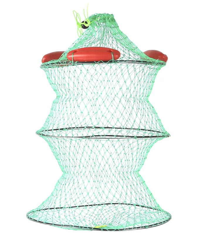 Качественный капроновый садок с поплавками подходит как для небольшой плотвы и карасей, так и для увесистых особей карпов и сомят. Его хорошо видно на воде при использовании с лодки.