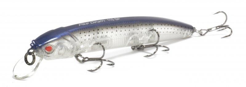 Воблеры от разработчиков Renegade модели Pike Death 115 F носят звучное название "Щучья смерть". Погружаются на полметра - метр. Рассчитаны на ловлю зубастой хищницы и судака, которые выходят на мелководья за мальками. Длина прогонистого минноу - 11,5 см. Масса - 16,5 грамм, благодаря огрузочным шарам, которые через неравные промежутки зафиксированы практически вдоль всего корпуса. Такая конструкция позволяет устойчиво работать на струе. Долетать до отдаленных целей. Громко шуметь при проводке, привлекая хищников издали. Плавучесть со знаком "+" позволяет облавливать поросшие, закоряженные места. Достаточно остановить проводку, чтобы минноу устремился вверх и проплыл над преградой.