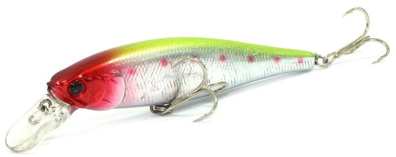 Воблер Lucky Craft Pointer 100 SP имеет специальную огрузку из латунных пластин в передней части, смещающую центр тяжести книзу. И несколько шариков в отдельной продольной камере. Во время заброса движение шаров увеличивает дальность полета. В воде они издают шум. Но главная "изюминка" - динамичная, провокационная игра, возможная, благодаря балансировке и геометрии лопасти. Приманка демонстрирует роллинг (продольные колебания) и не очень широкий вобблинг (поперечные колебания). Потому, чтобы "оживить" Pointer 100, достаточно незамысловатой равномерки. Однако остаточные покачивания корпуса сохраняются и на паузе. Следовательно, и проводка Stop & Go будет очень эффективна. Особенно на пассивной, заторможенной рыбе, что предпочитает атаковать на паузе. Кроме того, представленная модель является суспендером. И может долго мелькать на одном уровне, чтобы раздразнить хищника даже при полном бесклевье. Для проводки необходимо пространство без спутанных водорослей или подводных коряг.