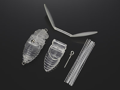 Крылья выполнены из полужесткого пластика — эластомера (Elastomer) и благодаря продуманной конструкции и выбору материала при забросе оказывают минимальное сопротивление. Длина ножек — 70мм, изготовлены они из настолько мягкого материала, что шевелятся, даже если просто держать Realis Shinmushi в руках.