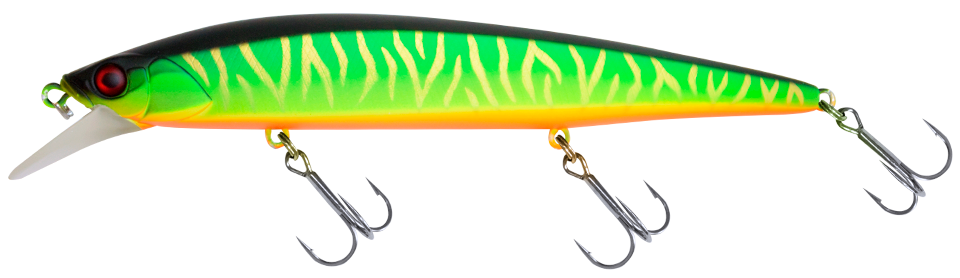 Для охоты на крупного хищника, например, трофейную щуку, пригодится минноу. Например такой, который предлагает компания Jackall. Приманки линейки Rerange наделены лопастью, которая, несмотря на небольшой размер, обеспечивает погружение на полтора метра. Длина представленной здесь модификации 130SP равна 13 см при массе в 21,5 гр. Такой солидный вес в сочетании с формой корпуса способствует хорошей дальности полета. Тем не менее, внутри «тела» скрыта и система дальнего заброса. Чтобы раскрыть игру данной приманки, можно применить равномерную проводку, стоп-энд-гоу или ведение рывками – самый популярный стиль анимации для минноу. Во время паузы в анимации приманка будет зависать в своем рабочем горизонте, так как его степень плавучести нейтральна.