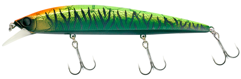 Для охоты на крупного хищника, например, трофейную щуку, пригодится минноу. Например такой, который предлагает компания Jackall. Приманки линейки Rerange наделены лопастью, которая, несмотря на небольшой размер, обеспечивает погружение на полтора метра. Длина представленной здесь модификации 130SP равна 13 см при массе в 21,5 гр. Такой солидный вес в сочетании с формой корпуса способствует хорошей дальности полета. Тем не менее, внутри «тела» скрыта и система дальнего заброса. Чтобы раскрыть игру данной приманки, можно применить равномерную проводку, стоп-энд-гоу или ведение рывками – самый популярный стиль анимации для минноу. Во время паузы в анимации приманка будет зависать в своем рабочем горизонте, так как его степень плавучести нейтральна.