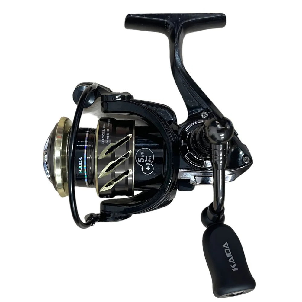 Безынерционная катушка Kaida Rezel имеет идеальное соотношение цена/качество. Лёгкая и надёжна, оснащена механизмом с шестью подшипниками. Основная шпуля изготовлена из метала, также, катушка комплектуется и сменной шпулей, изготовленной из графита. Выпускается в четырёх размерах, подходит для оснащения спиннингов и болонских удилищ.