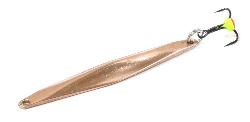 Название блесны "Ромб 60" указывает на ее форму. Вытянутая по геометрии приманка имеет плоскую внутреннюю и объемную внешнюю часть с выраженными несколькими гранями. Такая конструкция помогает блесне не только колебаться, но и покачиваться в воде. Траектория напоминает движение качелей "лодочка". Однако такая "изюминка" игры сохраняется только в стоячей воде. Здесь представлена модель Nord Water's Ромб 60 длиной 6 см и массой 9,3 грамма. Она рассчитана на зимнюю ловлю и вертикальные проводки. Если использовать приманку в местах с умеренным течением, она перестанет характерно подныривать передней частью, но все равно сохранит привлекательность для судака и щуки. Внимание к тройнику дополнительно привлекает яркая цветная бусина.
