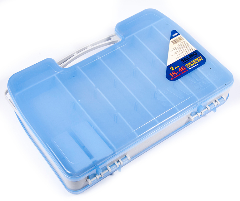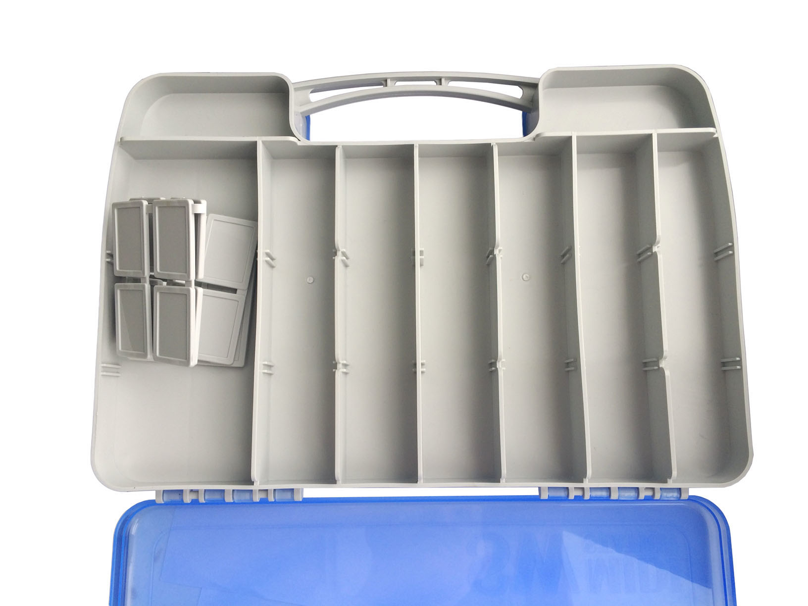 Двухсторонняя пластиковая коробка для приманок с 18-ю отделениями и 24-мя съемными перегородками.