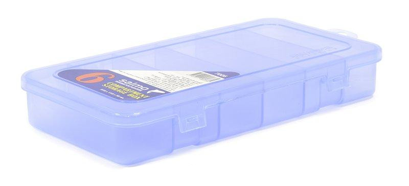 Компания Салмо предлагает большое количество моделей ящиков и коробок, которые очень удобны для того, чтобы перевозить и хранить снасти. Кроме вместительных ящиков, найдутся также и компактные кейсы, которые предназначены для перевозки фурнитуры и мелочей оснастки. Например, представленная здесь коробка с индексом 7006. Она выполнена из прозрачной пластмассы, что делает проще поиск необходимых деталей фурнитуры среди многочисленного снаряжения. Внутреннее пространство данной коробки поделено на шесть вертикальных отсеков. Их размеры составляют 10*3*2,9 см. Вес коробки равен 120 гр. Длина кейса – 21 см.