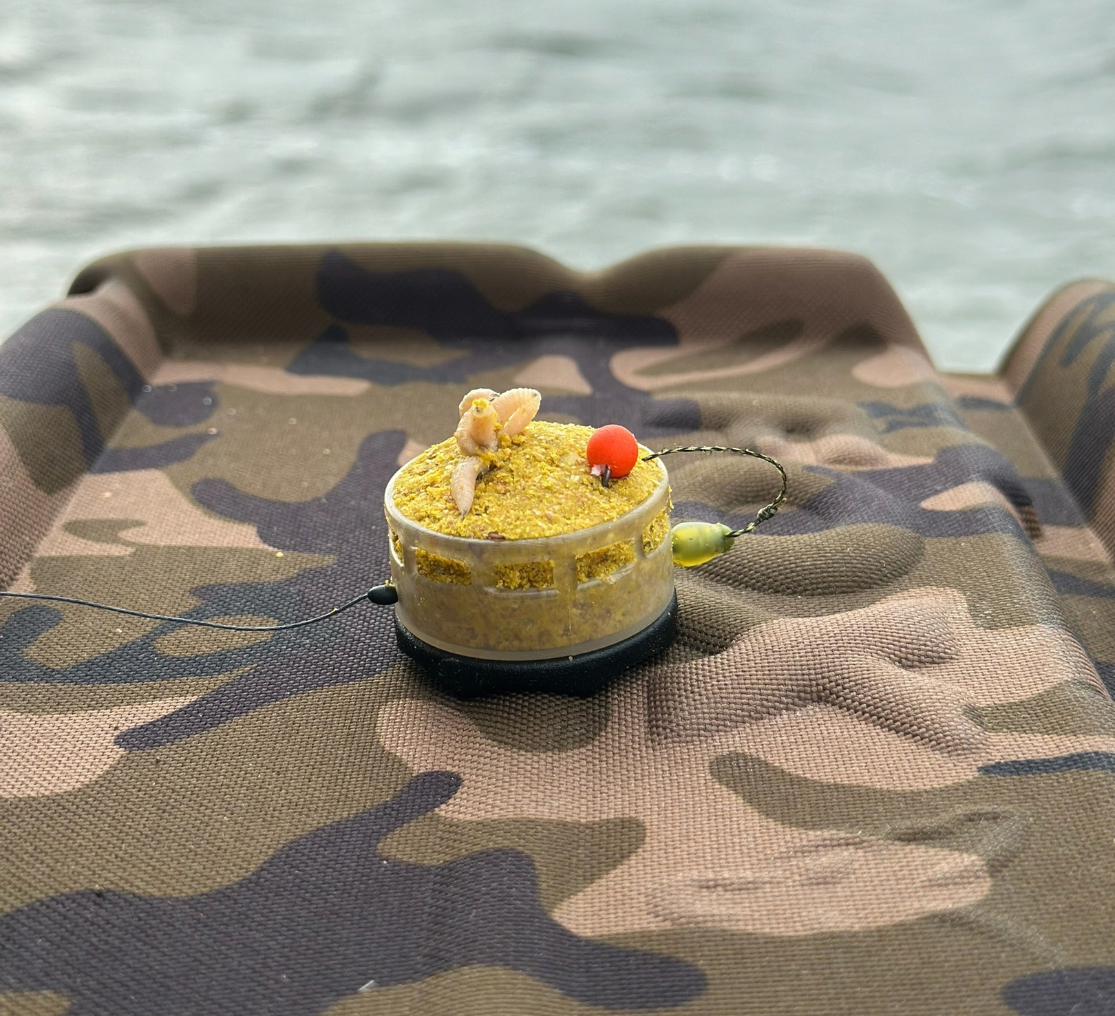 Сетка кормушки изготовлена из гибкого пластика, он эластичный и прочный. Грузило кормушки выполнено из свинца и качественно окрашена в чёрный цвет порошковой краской, обладающей высокой антикоррозийной стойкостью. Кормушка оснащается методом ин-лайн (смотри рисунки 2 и 3). На выходе получается очень уловистая снасть!