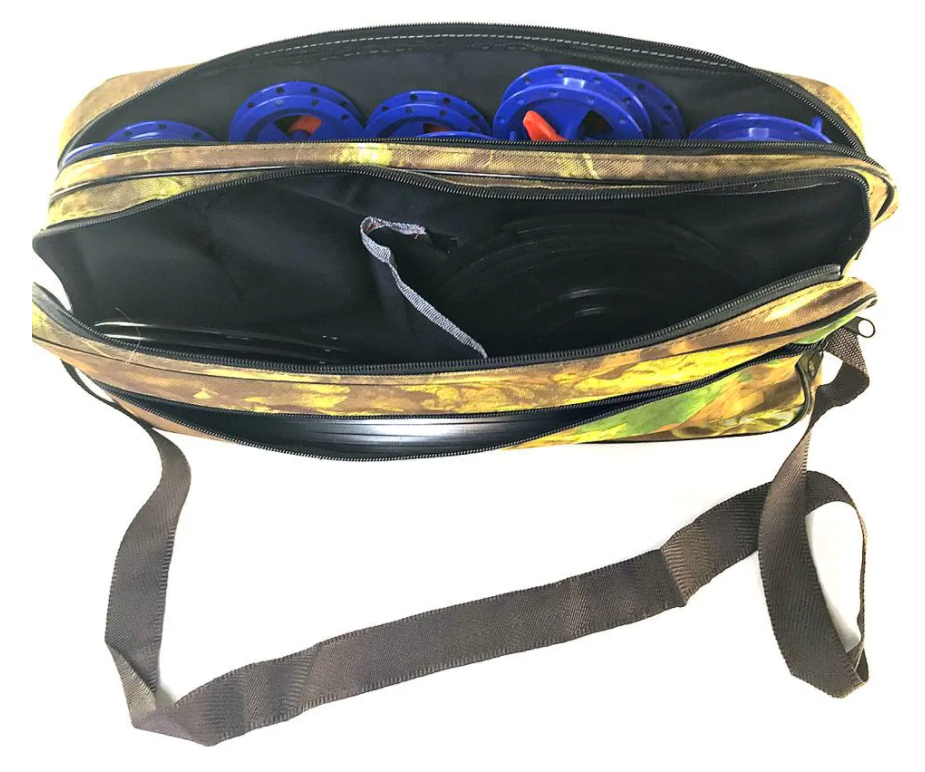 Сумка для жерлиц Zori - очень удобная, большая сумка для жерлиц с тремя карманами - один под тарелки, второй под катушки, третий под флажки.