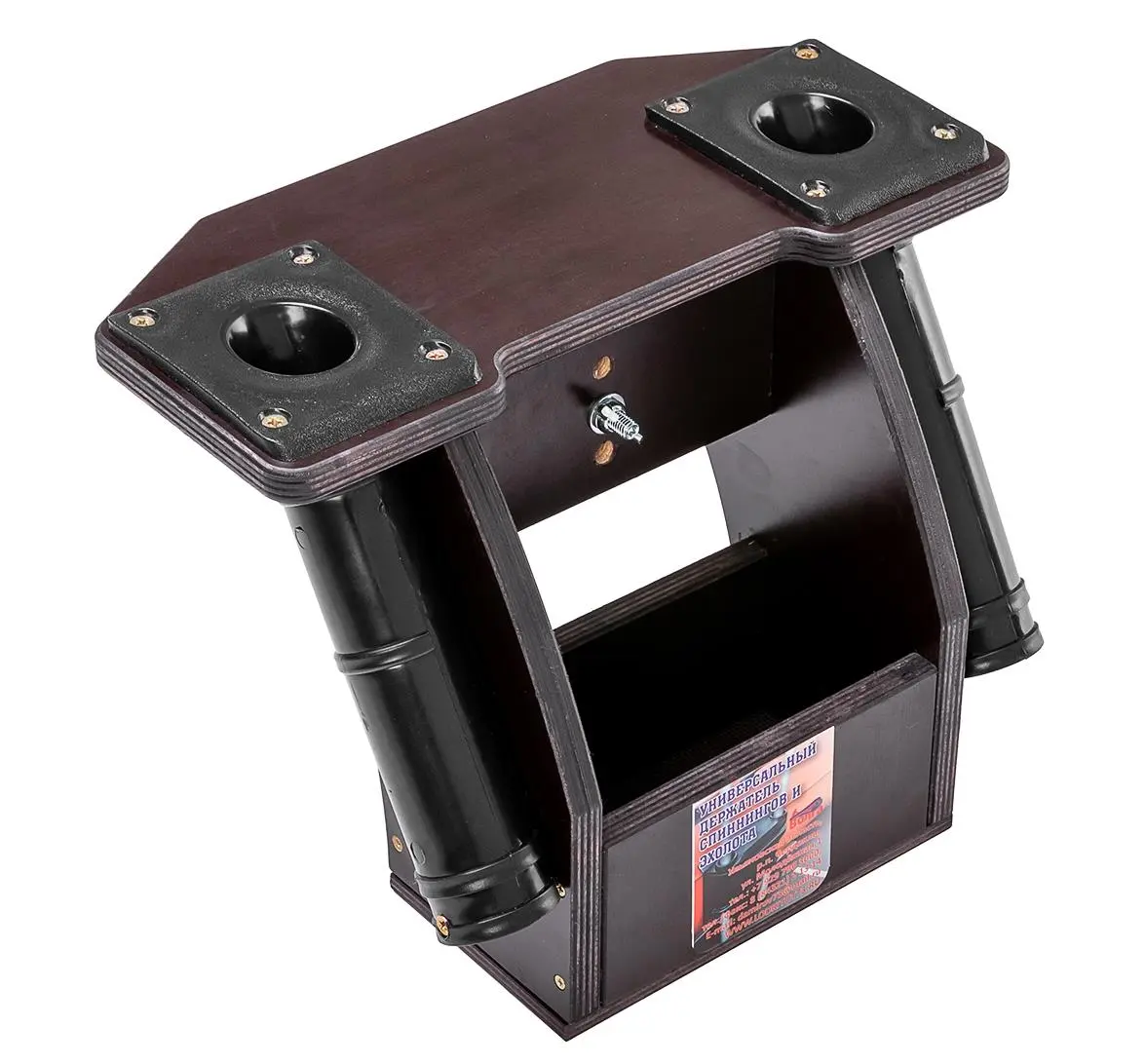 Держатель спиннинга и эхолота Волга №3 это многофункциональная конструкция, выполненная из водостойкой фанеры и которая позволяет удобно зафиксировать эхолот (картплоттер, навигатор), АКБ и две удочки. Удобный аксессуар для любого рыбака.