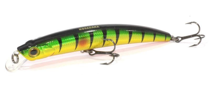 Ultima XS от фирмы Kosadaka - это типичный воблер-минноу с узкой, прогонистой формой тела. Серия выпускается в размерах 9 и 11 сантиметров, имеющих горизонт заглубления 1 и 1,5 метра соответственно. Во время проводки воблер Ultima быстро погружается на заданный уровень и стабильно его удерживает. Минноу обладает активной, стабильной игрой, очень точно имитирующей мелкую кормовую рыбку. Лучшей проводкой станет твичинг различной степени интенсивности. На паузах воблер красиво и соблазнительно покачивается. Приманки Ultima XS оснащаются погремушкой, создающей шум при проводке, что очень эффективно воздействует на хищную рыбу, провоцируя ее на атаку. Kosadaka Ultima XS - весьма уловистый минноу, на него охотно клюет окунь, щука, судак и язь.