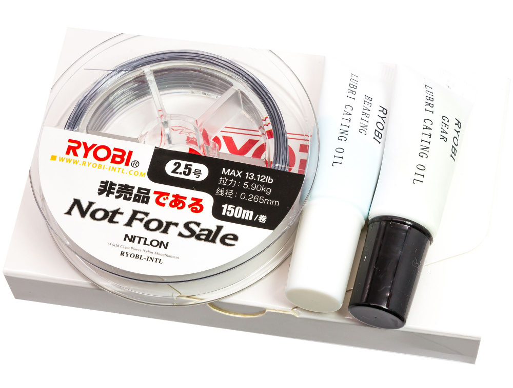 Также приятным дополнением станет набор, состоящий из двух типов смазки для катушек, и 150 метров высококачественной лески RYOBI!