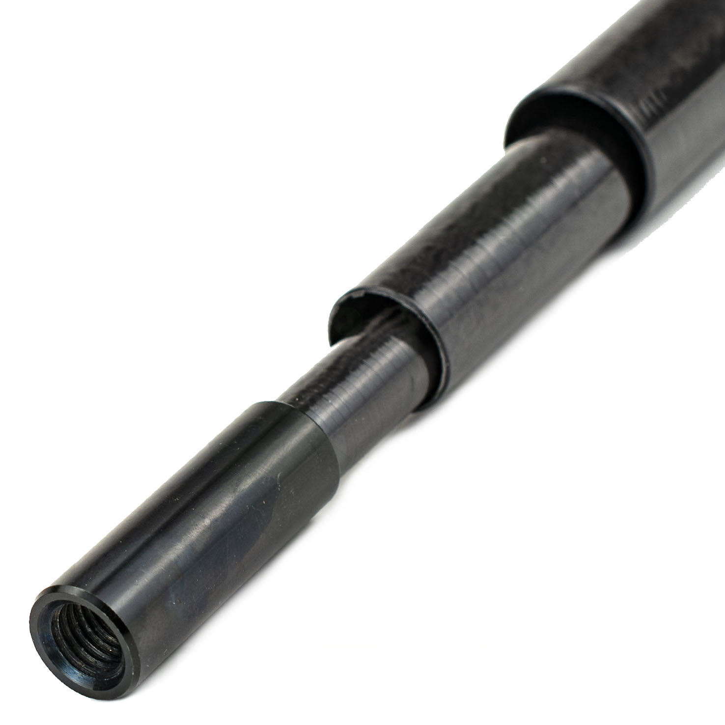 Материалом для изготовления новой серии телескопических ручек для подсачека был выбран карбон средней модульности. За счет этого ручка получилась достаточно жесткая и легкая. На этих ручках установлен узел крепления с резьбой 3/8 дюйма.
